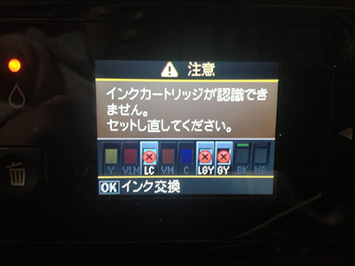 到着後、インクを入れてみたら、まさかのエラーでまくり!