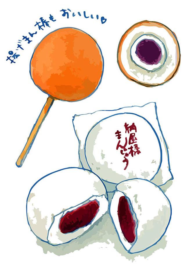 納屋橋饅頭なんですが、実際の絵は、もっといろいろ凝ったものになってます。