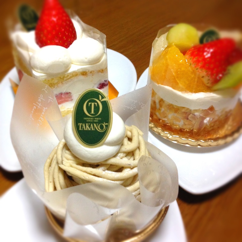 年越しは高野のケーキで。母は常にイチゴショート。オットのは一番人気のフルーツロイヤル。結構悩んで、自分のはモンブラン。