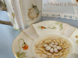 ハーブティーマグ2種。 2003年は鳥の年にしよう!と張り切って描き始めた最初の作品。 特に右側の黄色い鳥のきょとんとした顔がお気に入り。 |