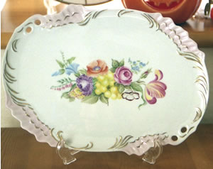 マイセンのアンティークをモチーフに描いた2枚の作品です。大皿ですので、かなりの大作でした。 今回初めて平筆とごく遅乾性の油を使用しました。それまではヨーロピアンの基本的技法の丸筆を使用した作品しか描いて来なかったので、とてもとまどい、慣れるのに時間がかかりました。 けれどもさすがに重厚な仕上がりで、リビングに落ち着いた雰囲気を持たせてくれています。 |