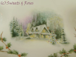トーマス・キンケイドさんの風景も人気のモチーフですが、もとが不透明な画材(アクリル?)で描かれているだけに、透明感のあるチャイナペイントで表現するのはとても難しいものでした。
