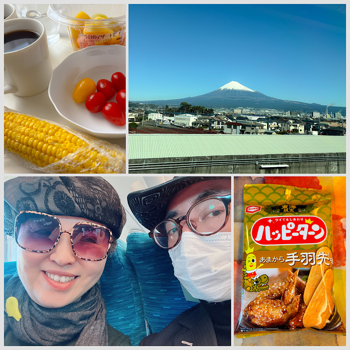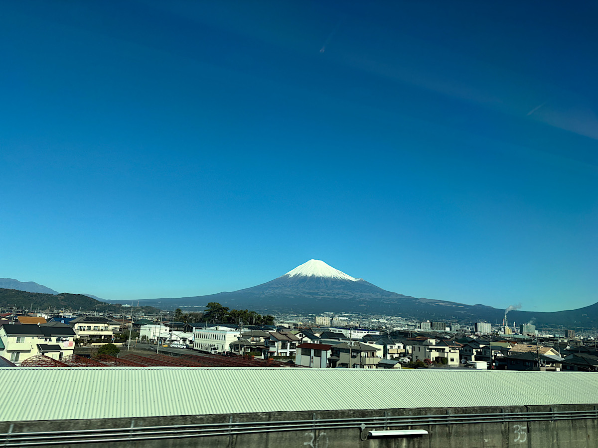 富士山が美しすぎて、思わず隣で眠っているオットを起こしてしまったわ。