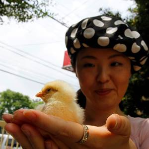 そうそう、画像はまだ実家に住んでた頃。実家の隣が幼稚園で、たまに移動動物園が来て、ひつじやヒヨコを撫でさせてもらえたりしたのだ。子どもでもなく子どももいないのに、ちゃっかりヒヨコと記念撮影。かわゆし💓