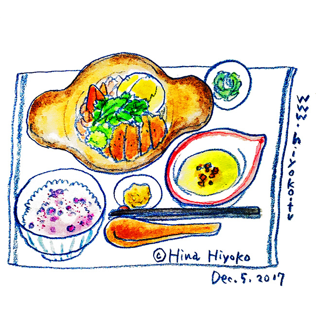 2017年12月。とんカツ定食の器がコアラみたいでかわいかったので。