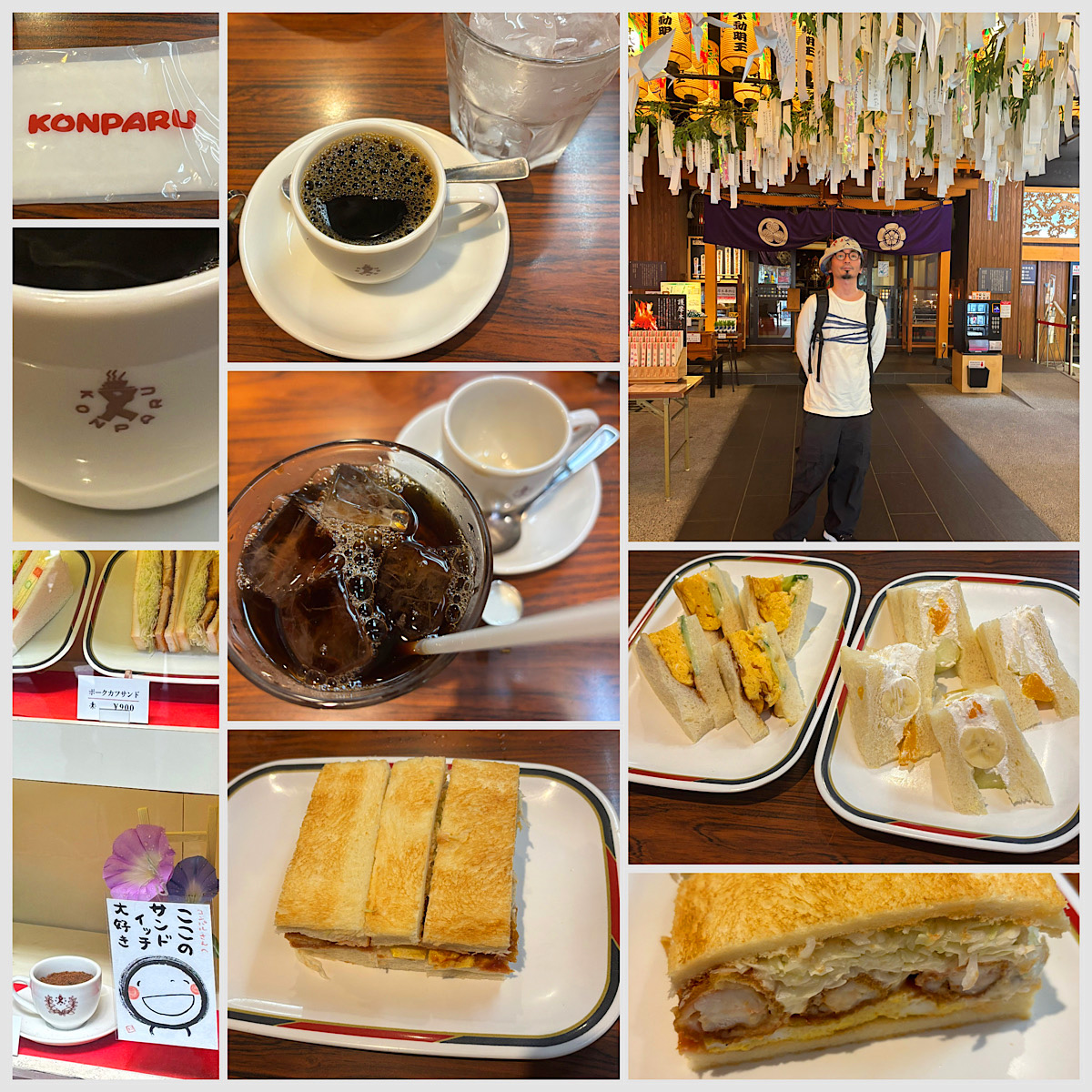 そして何より、めっちゃ食べにくい。でも、そんな不満を補って余りあるほどおいしかった。名古屋コーチンのたまごサンドと姉さんのリクエストでフルーツサンドの3種類を3人で分けた。ホットコーヒーで入れるアイスコーヒーも美味。