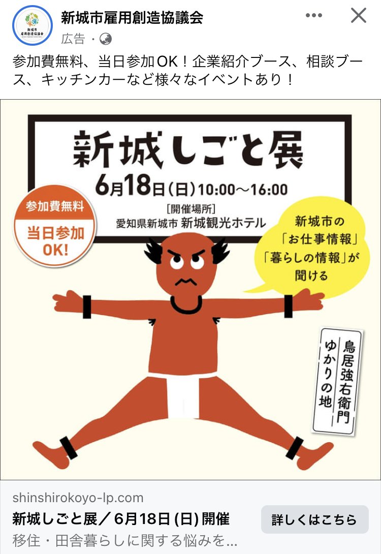 (2023/6/13)FBに新城市のこんな広告出て来て
