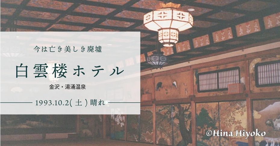 そんなわけで、初回は今は失われてしまった金沢の白雲楼ホテル。東洋一といわれ、玄関部分はライト設計ともいわれるのに、のちに廃墟となり取り壊されてしまったなんて。もったいなさすぎる!写真が下手なのがすごく残念な記録です(笑)この頃宮田がいてくれてたらな(まだ高校生…)!