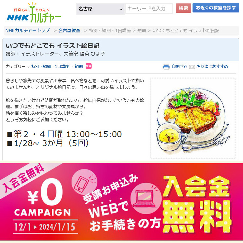 NHKカルチャー名古屋で1/28〜私のイラスト講座始まります!