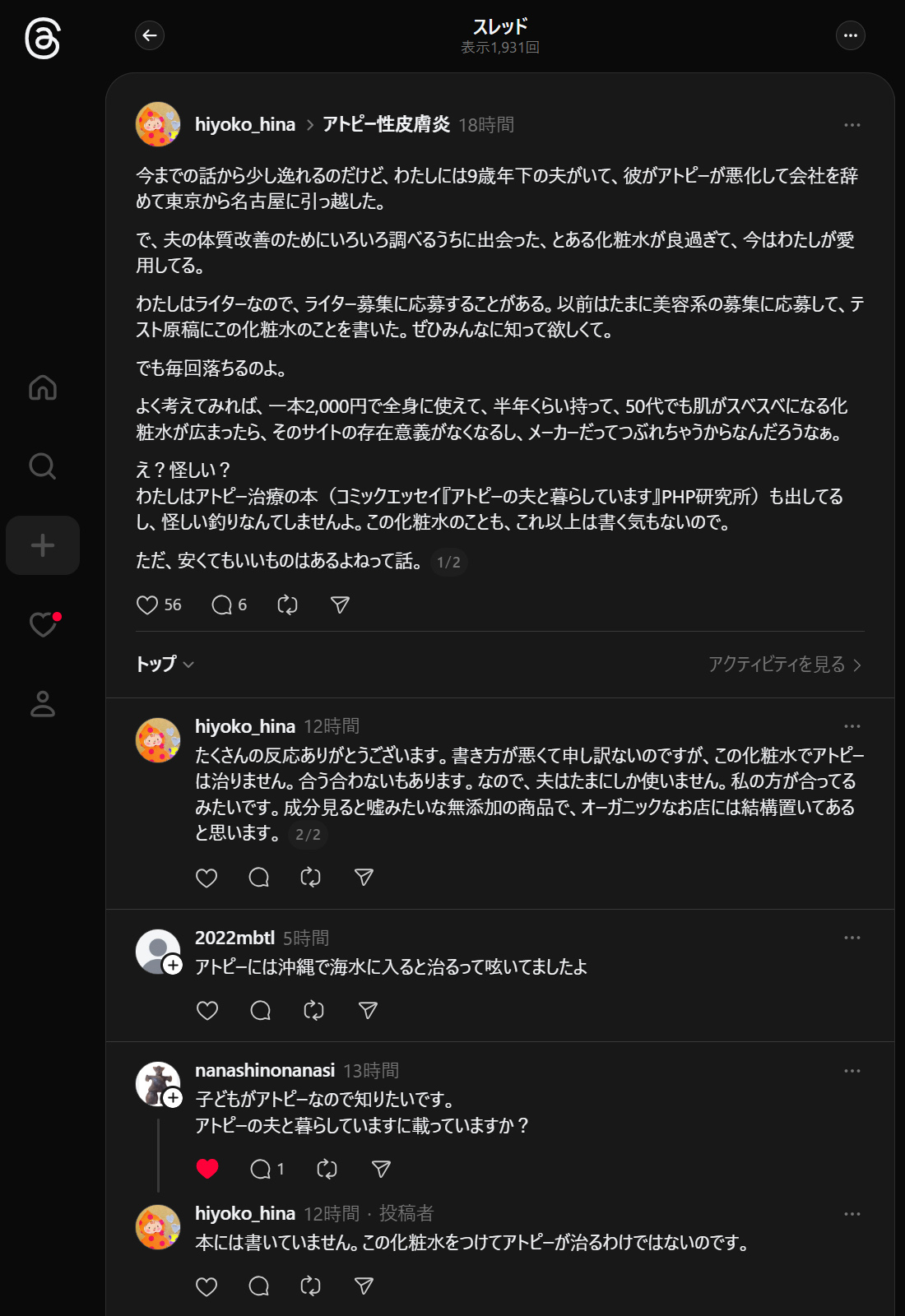 260116_threads1.jpgThreads¤Ë¤³¤ó¤ÊÅê¹Æ¤ò¤·¤¿¤é¡¢¤±¤Ã¤³¤¦ÆÉ¤Þ¤ì¤Æ¡Êɽ¼¨1927²ó¡Ë¡¢¶µ¤¨¤ÆÍߤ·¤¤¤È¤¤¤¦¿Í¤¬²¿¿Í¤«¤¤¤Æ¡¢ÃǤ俤顢¥Õ¥©¥í¡¼¤ò¤Ï¤º¤µ¤ì¤¿¤Î¤Ç¡¢¾Ã¤·¤¿💦