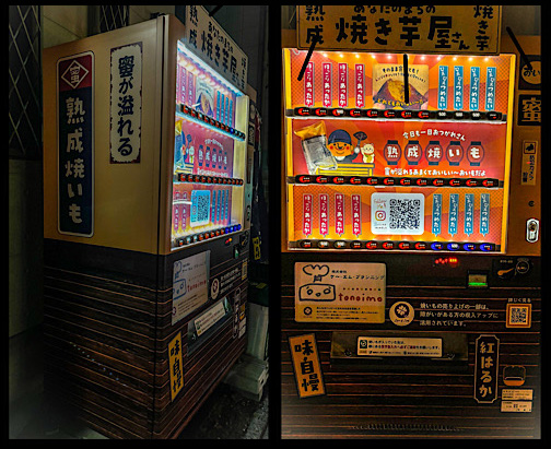 (2024/12/7)昨日のめちゃくちゃ寒かった薪能の帰りにオット宮田が「焼き芋の自販機がある!」と見つけまして。