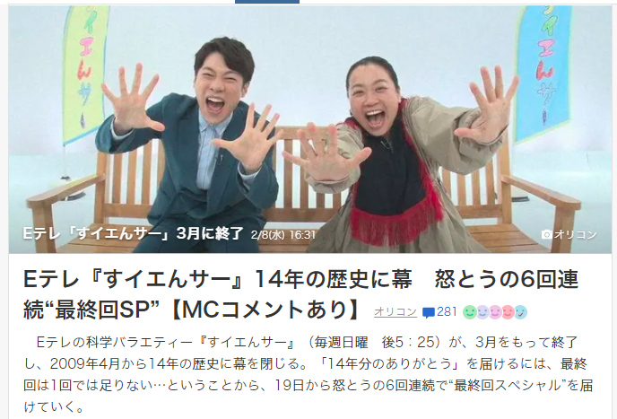 NHK Eテレ『すイエんサー』ついにこの3月で終了!