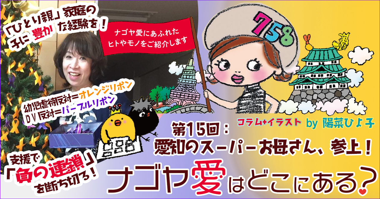 (2023/9/9)【書きました!】中日新聞広報誌ADFILEに連載中のコラム『ナゴヤ愛はどこにある?』Web版が更新されました!これがADFILEとして紙の広報誌としては最後の掲載!ひとり親家庭の強い味方!の山本廣枝さんにインタビュー!ぜひお読みくださいませ☆