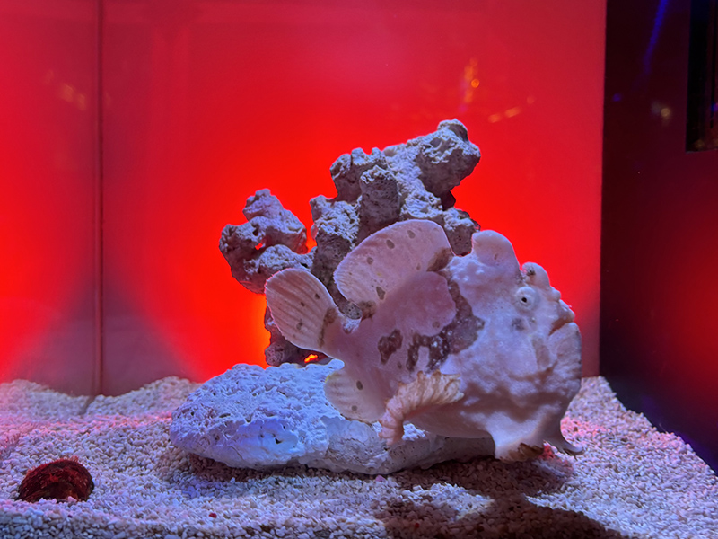 個人的には、この赤い水槽の漫画みたいなお顔の白いお魚が気に入りました!