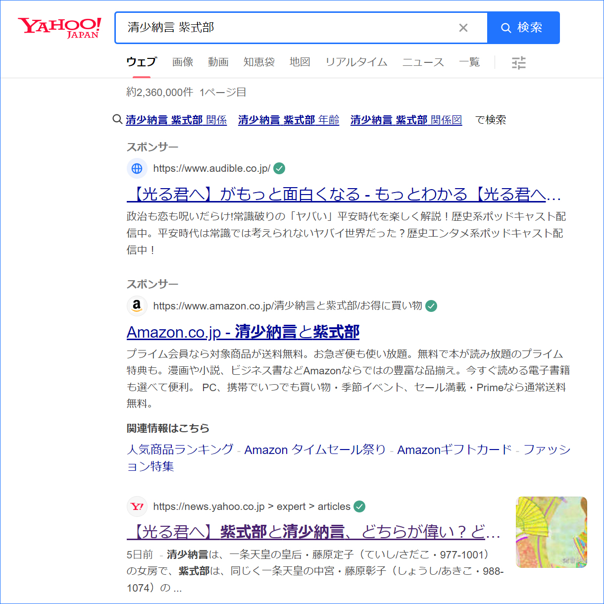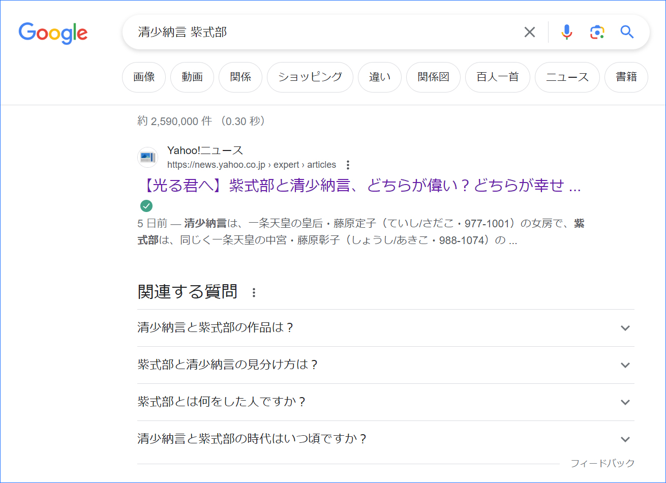 「清少納言 紫式部」で検索TOPに!