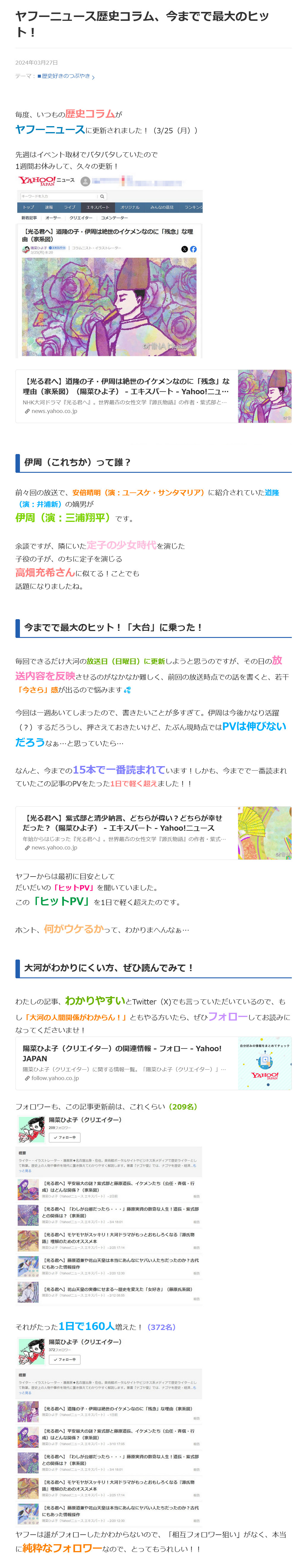 ヤフーニュース歴史コラム、今までで最大のヒット!