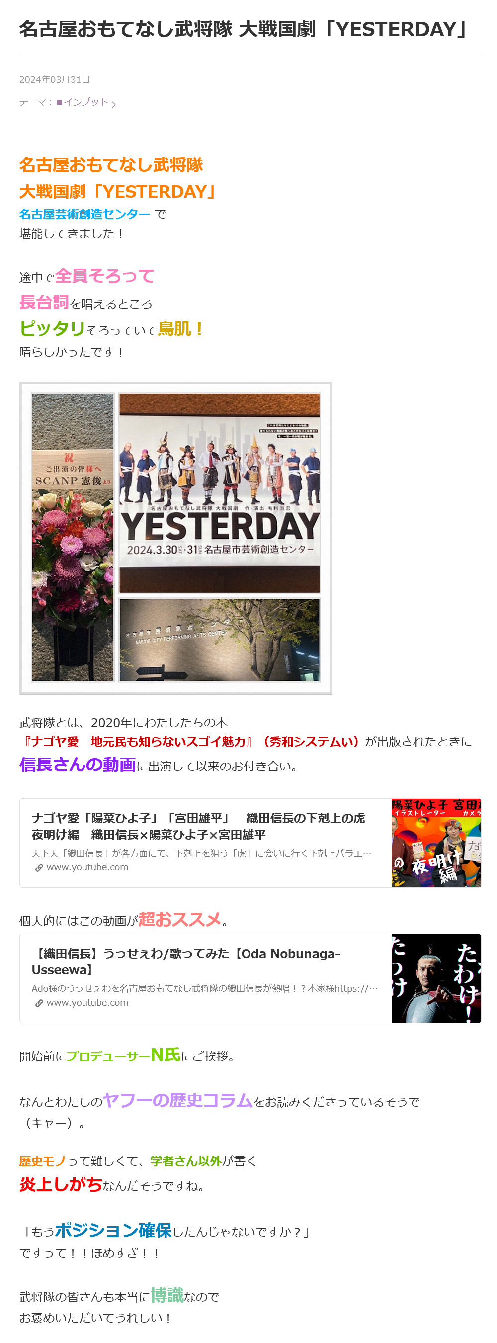 名古屋おもてなし武将隊 大戦国劇「YESTERDAY」