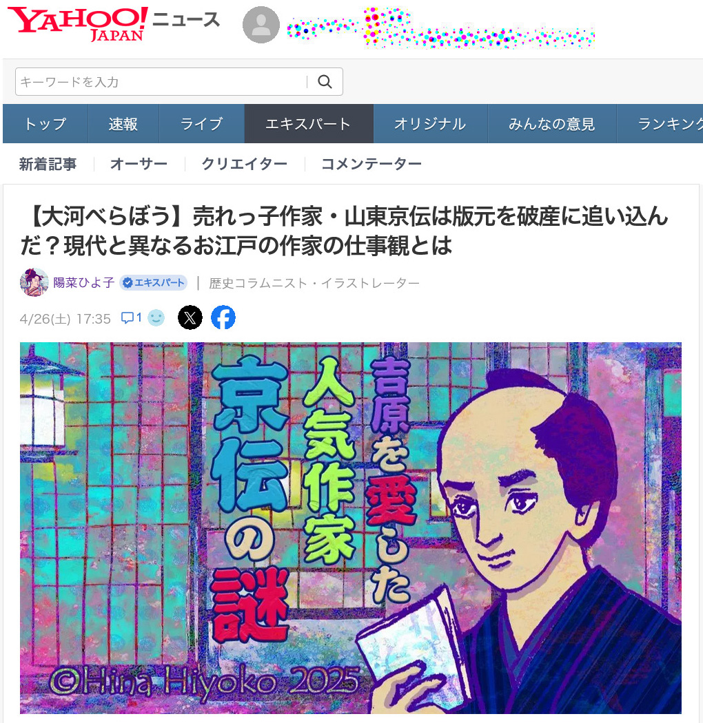 Newsに【お仕事】Yahoo!ニュースエキスパート「歴史コラム」執筆(Yahoo!JAPAN)追記